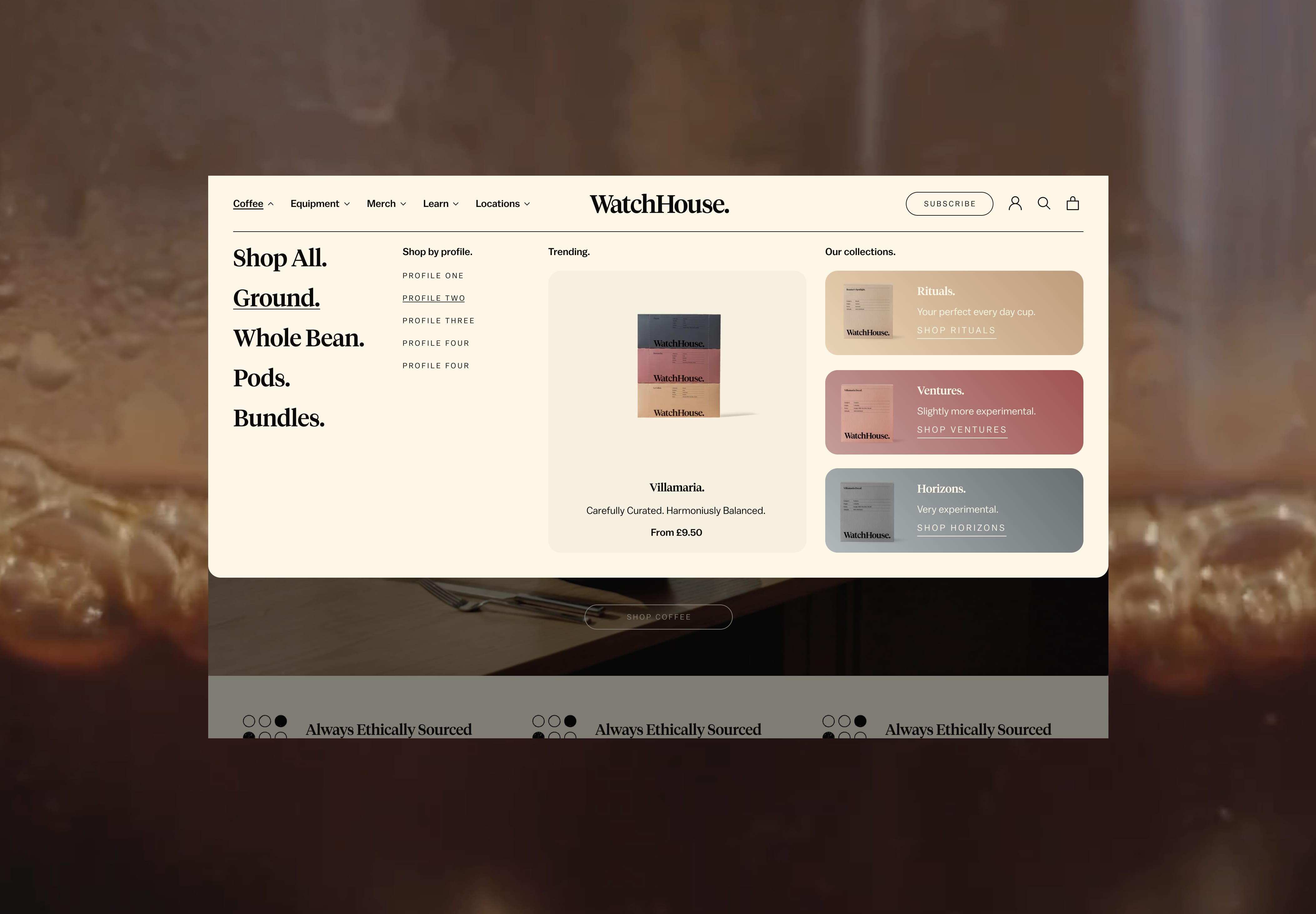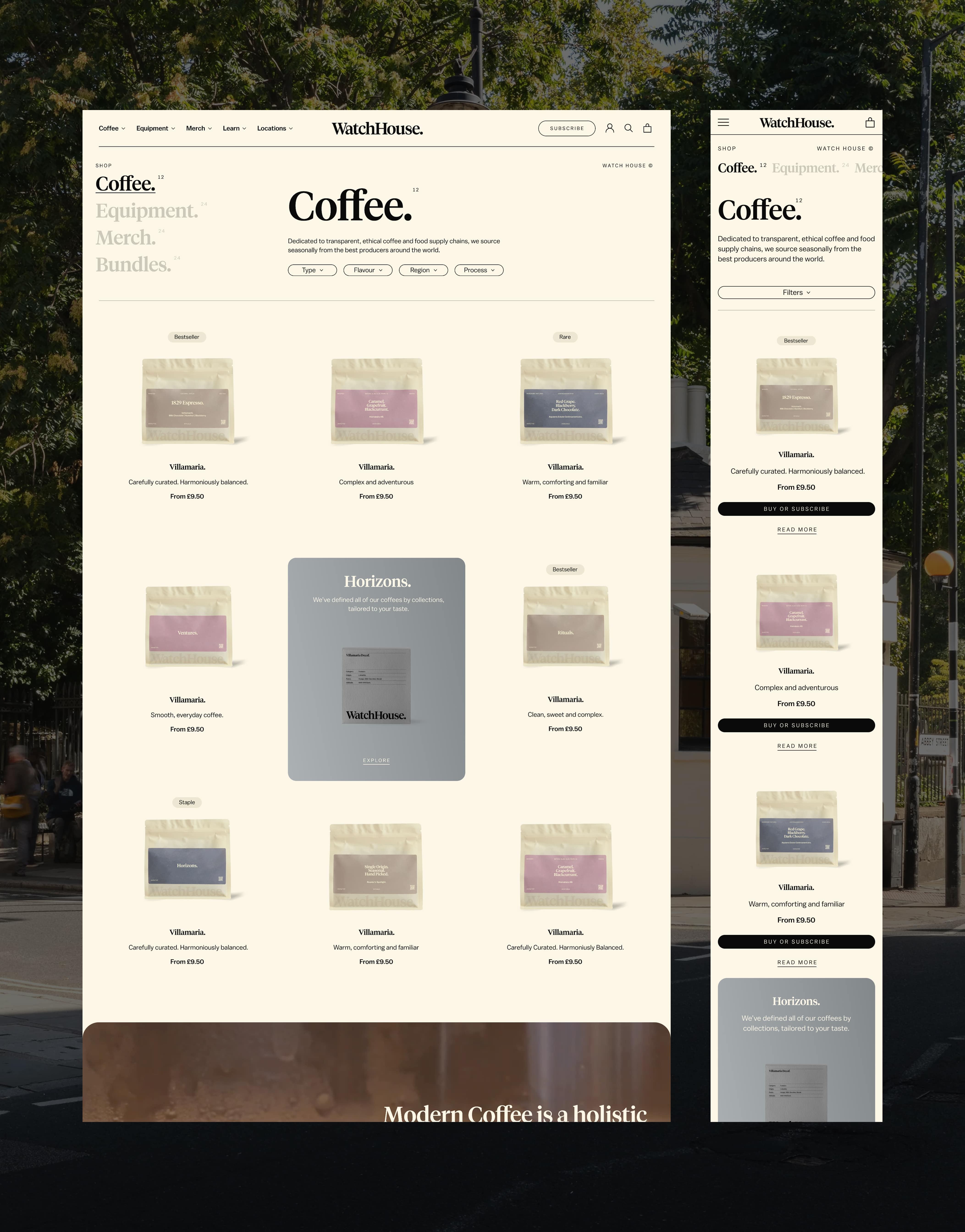 A premium digital experience for WatchHouse that blends brand storytelling with seamless eCommerce, celebrating its iconic coffee houses across the UK.